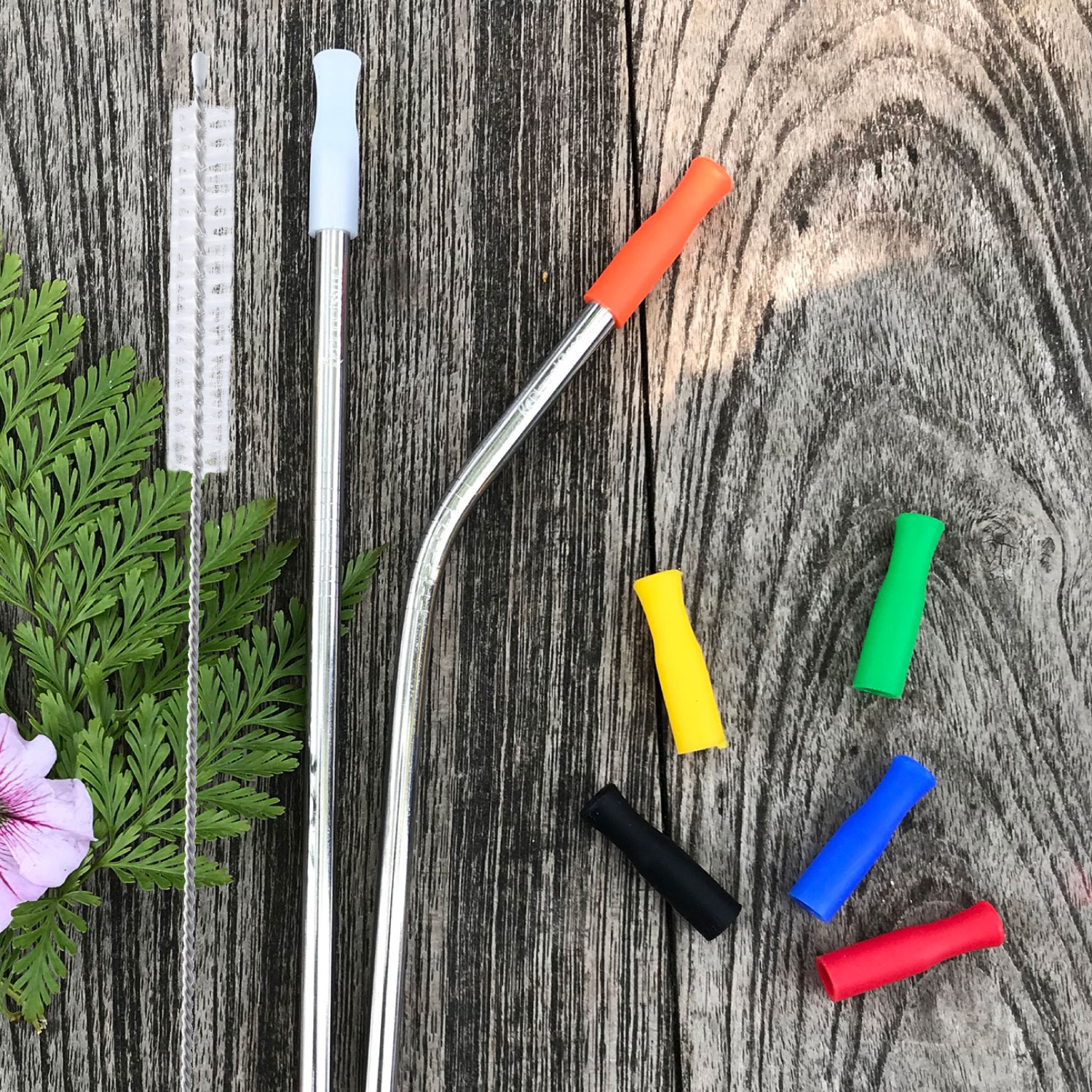 Stainless Steel Straws 215 x 8 mm Free!! Silicone Tips + Cleaning Brush + Pouch